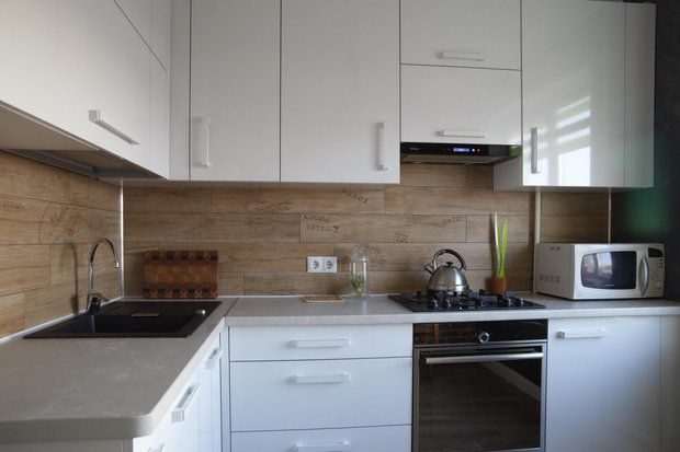 От автора: ремонт на кухне проходил под девизом «хочешь что-то сделать хорошо — сделай это сам». Поэтому все, начиная с черновых работ и заканчивая сборкой кухонного гарнитура и установкой техники, делали самостоятельно.