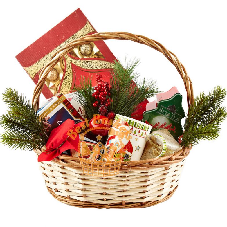 Прекрасным вариантом станет корзина, наполненная определённым содержимым. Корзина, может быть наполнена сладостями либо фруктами, которые так необходимы в зимний период. Для любителей чаепития можно положить в корзину несколько сортов чая и упаковочку печенья. Дамам непременно придётся по вкусу корзинка, наполненная, средствами по уходу за собой либо солями и пеной для ванны. Такие подарочки будут не только красивыми, но и полезными. Допустим, последний вариант наполнения корзины подойдёт для мамы, свекрови либо начальницы. А для начальника, папы и свёкра можно в корзину положить бутылочку коньяка либо виски, украсить алкоголь можно фруктами.