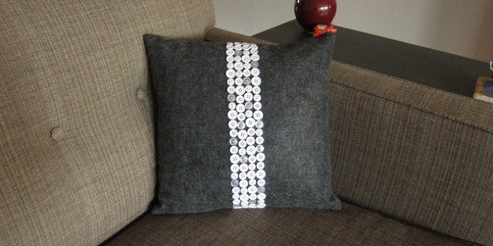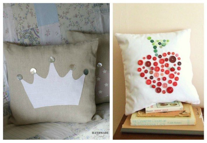 Самое простое, что приходит в голову с декором из пуговиц, – это подушки. В своим мастер-классе блогер Kat подробно описала, как она сшила подушку и сделала на ней очень эффектный принт с пуговицами.Вам понадобятся: подушка, пуговицы, нитки и иголка.