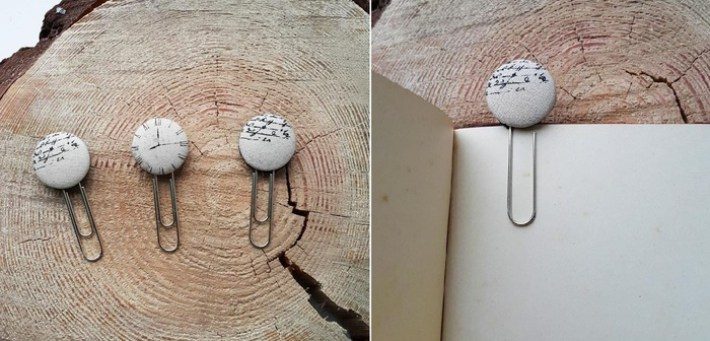 Блогер Maven предлагает сделать из пуговиц забавные скрепки, которые могут служить закладками для книг. Научиться их делать можно также на Ярмарке мастеров у Виктории.Вам понадобятся: канцелярские скрепки, суперклей или клеевой пистолет, фетр, пуговицы.