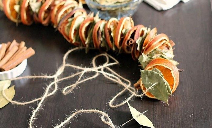 Гирлянда – такой же плохо заменимый атрибут зимних праздников, как и цитрусовые. Так почему бы не совместить их, а заодно и приятное с полезным, сделав оригинальное украшение для дома? Которое своим ароматом ещё долго будет отгонять хандру и напоминать о праздничном сезоне.