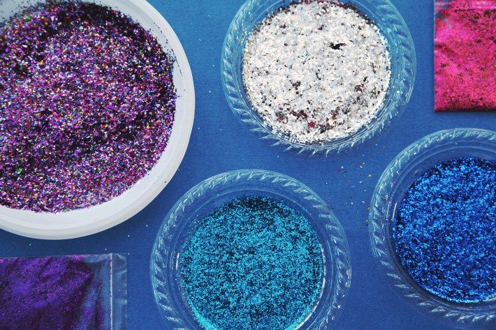 Но рекорд по терапевтическому эффекту всё-таки побивают блёстки, которые в новогоднее время выглядят уместно в любом количестве. Просто поверьте на слово – ничто не способно создать более радостное и праздничное настроение, чем горы блёсток, в которых можно возиться руками и обклеивать ими всё подряд. И, конечно, вытряхивать потом блёстки из волос в течение ещё двух недель (как песок после отпуска на море) – бесценно.