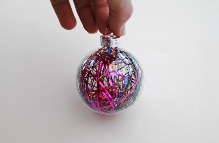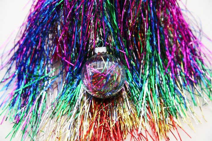 Бумажки, полосочки, дождик и мишура – в ход идёт всё, что может легко и быстро поместиться в шаре. Экспериментируйте!