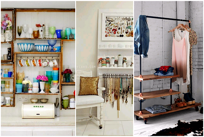 Открытые вешалки, стеллажи и рейлинги — это пожалуй самые простые и доступные системы хранения, способные не только вместит в себя массу самых разных вещей, но и стать интересной деталью интерьера, превратив вещи повседневного использования в выставочные экземпляры.