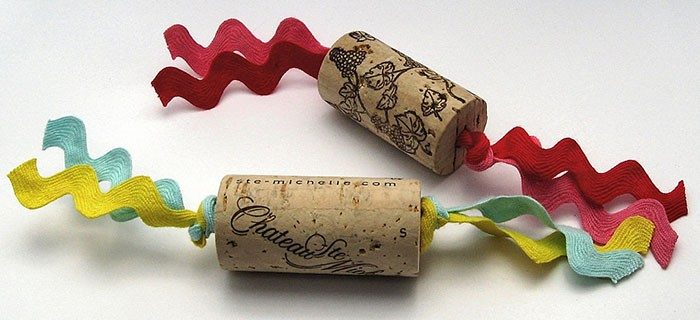 Коты любят играть с винными пробками, потому что они легкие. Можно просто дать коту пробку, но если есть немного свободного времени – сделайте более сложную игрушку. К примеру, обвяжите ее крючком или прикрепите яркие перышки, ленты.