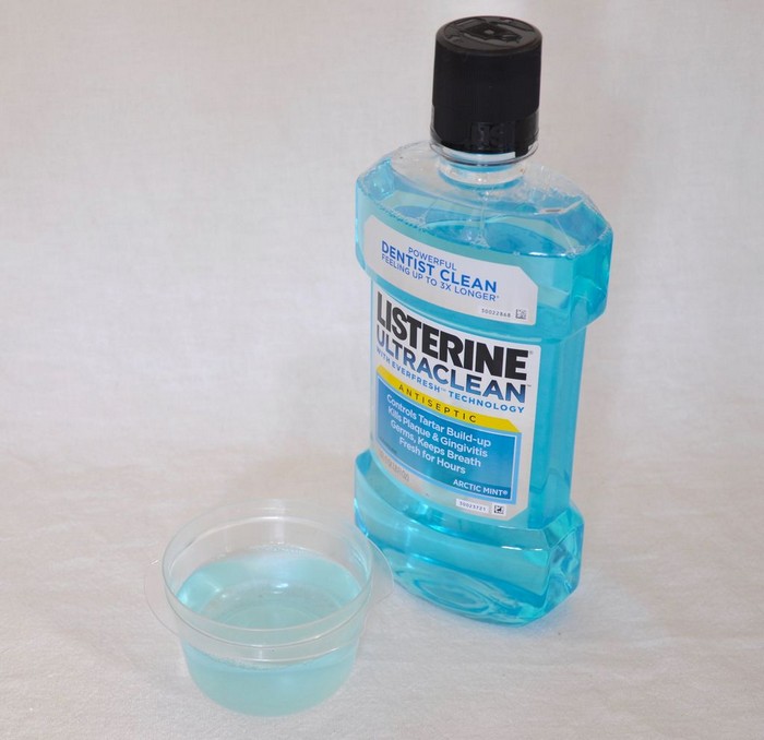 Если под рукой нет перекиси водорода, спиртосодержащего средства или специального антисептика – обработайте повреждение ополаскивателем.