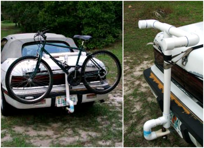 Из ненужной ПВХ-трубы можно сделать удобное крепление для велосипеда на багажнике собственного авто.