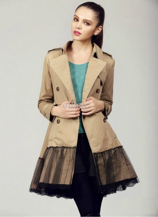 Обновить светлое пальто и придать ему загадочный драматичный вид поможет широкая полоска кружева, пришитая к его подолу.