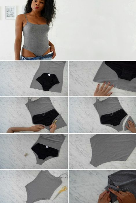 Боди — это не только чрезвычайно стильно и сексуально, но еще и очень удобно. Кстати, сделать такой нужный предмет женского гардероба можно своими руками, правильно порезав обычную майку.