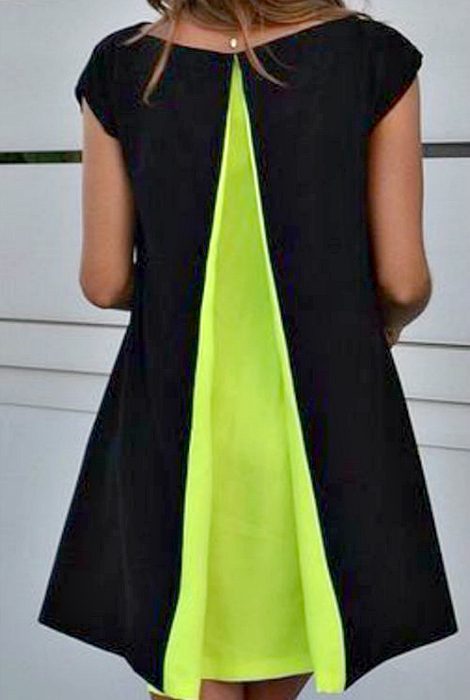 Украсить наскучившее однотонное платье или слегка расширить любимую вещь, которая стала мала, поможет вставка из яркой ткани, пришитая ровно по центру сзади. Стоит отметить, что подобную переделку можно произвести исключительно с полуприталенным платьем или платьем ровного кроя.