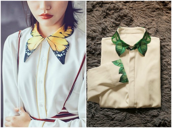 С помощью трафаретов, красок и вышивки можно здорово преобразить воротничок офисной рубашки. Просто придайте понравившуюся форму воротнику при помощи трафарета, после чего сделайте его ярким с помощью вышивки или покраски.