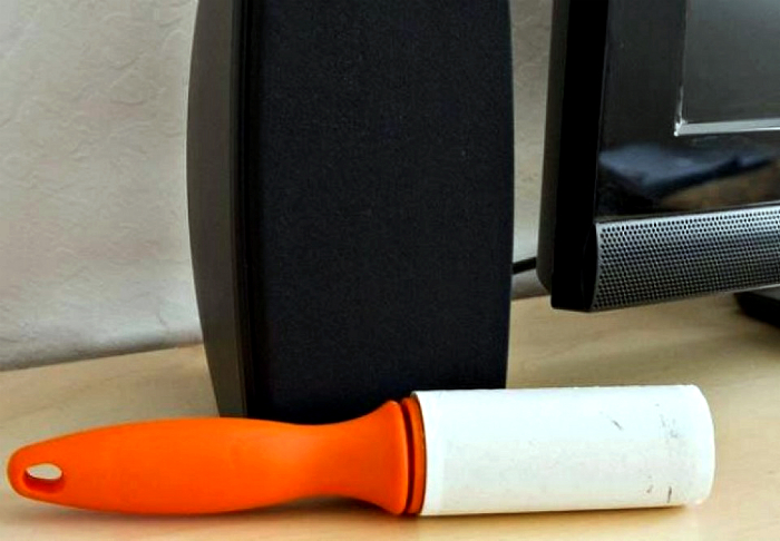 Почистить сетку музыкальной колонки от пыли можно с помощью липкого ролика для одежды. С помощью липкого ролика можно собрать не только пыль, но и волосы, а также шерсть домашних любимцев. Возможно, что после такой чистки даже улучшиться качество звучания.