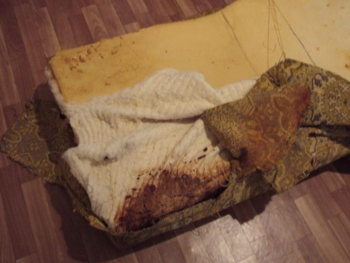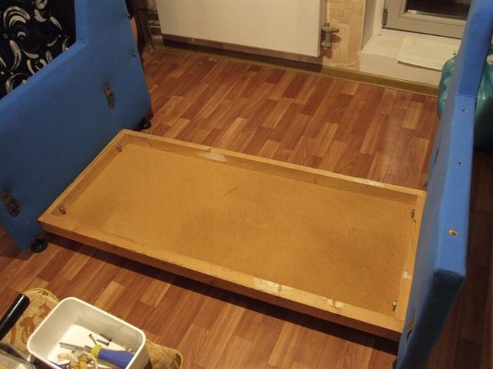 Все это, естественно, отправилось на помойку, дерево обработано шкуркой, подремонтированы и приведены в порядок некоторые фанерные части, продавленные от времени.
