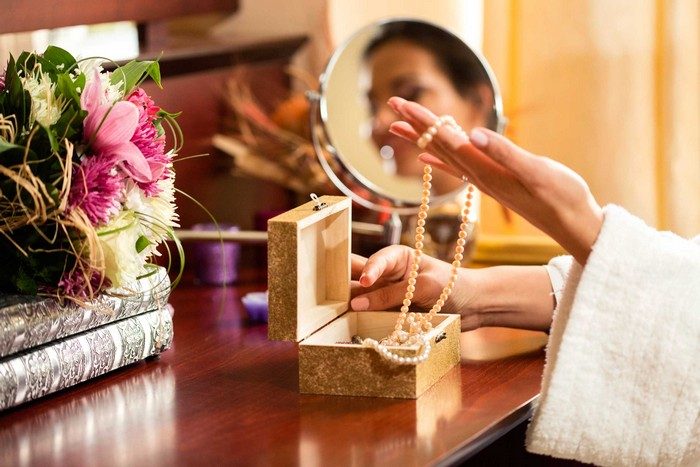 Колье на вас располагается как-то несимметрично? Попробуйте хитрость: расположите булавку между обеими застёжками и соедините их. Теперь украшение стало больше, длиннее и наверняка «сядет» куда лучше.