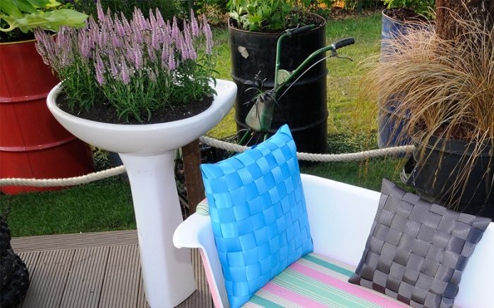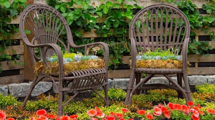 Для того чтобы декор прослужил долго, рекомендуем защитить сиденья слоем гидроизоляции. Как минимум, застлать их целлофаном, на который насыпается почва.