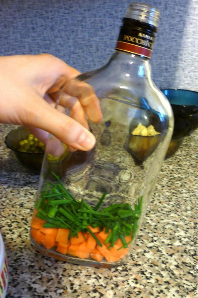 Декоративная бутылочка с овощами своими руками