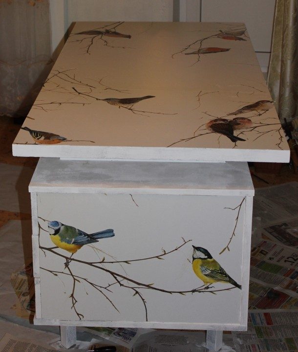 Через сутки покрыла все двумя слоями прозрачного лака и заменимла ручки на ящиках.