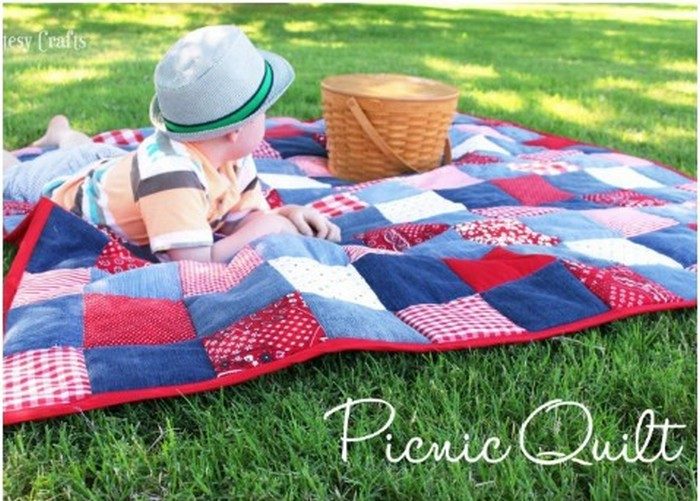 3. Старые джинсы можно порезать и сделать из них лоскутное одеяло