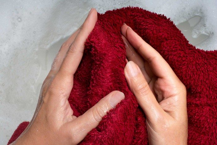 Расправьте одежду на плоской поверхности, приложите к «помятостям» влажное (и, желательно, тёплое) полотенце, хорошенько прижмите. Это должно сработать против глубоких складок. После отправляйте вещь на вешалку и дайте высохнуть.