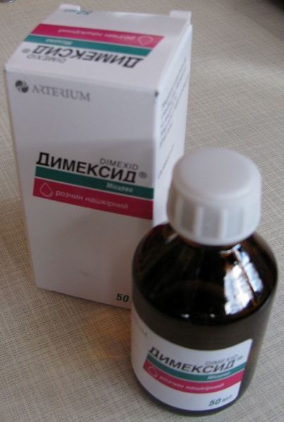 Идем в ближайшую аптеку, покупаем Димексид (Диметилсульфоксид, ДМСО) — лекарственный препарат, противовоспалительное и аналгетическое средство.
