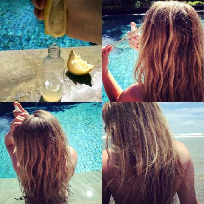 Сделать свои волосы сияющими и осветлить пряди на несколько тонов можно и без посещения парикмахера. Просто смешайте в бутылке с распылителем пол стакана воды, четверть стакана перекиси водорода, столько же свежевыжатого лимонного сока и пол чашки не крепкого ромашкового чая. Полученное средство наносите на влажные волосы перед укладкой.