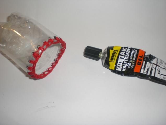 Кончик нитки заправляем и подклеиваем вовнутрь контейнера.