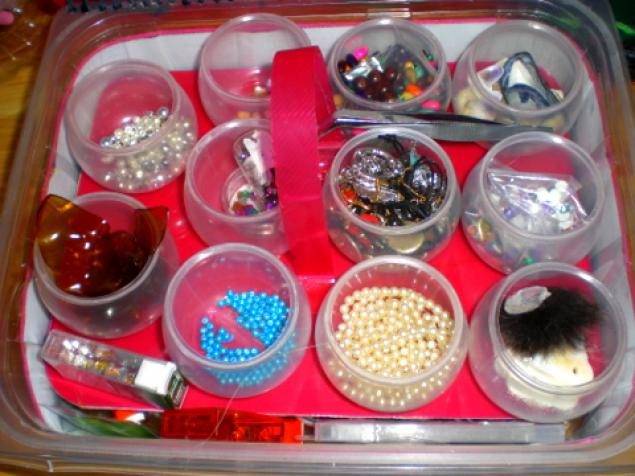 Другой вариант изготовления коробок для хранения мелочей: в нем я использовала плотные пластиковые стаканчики из под йогурта фирмы Danone.