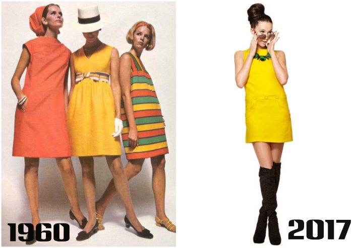 Во второй половине 60-х в моду вошел лаконизм, плавные линии и свободный крой. Именно в это время в журналах появились снимки девушек в платьях трапециях рубашечного типа, которые не потеряли свою актуальность до сих пор и спустя почти 60 лет, вновь вернулись на модную арену. Так что, если в гардеробе мамы или бабушки до сих пор хранится подобное платье, не спешите его выбрасывать, возможно, именно оно станет эксклюзивной деталью вашего модного образа этой весной.