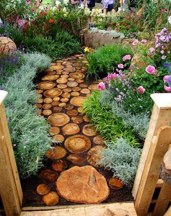 Деревянные спилы можно использовать для изготовления оригинальных садовых дорожек, процесс создания которых не потребует особых физических усилий и затрат, а конечный результат будет радовать еще долгое время.