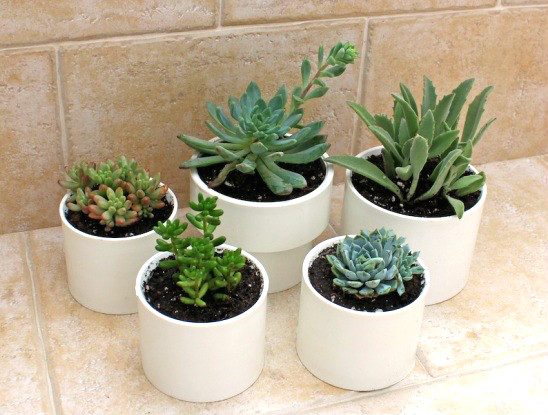 Одинаковые цветочные горшки сделают интерьер дачного домика боле стильным и уютным. Если тратить лишние деньги не хочется, то их можно сделать из равных отрезков пластиковой трубы. В качестве дна цветочных горшков выступают заглушки для ПВХ-труб. Их просто нужно одеть на один из краев.