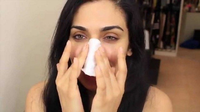 Самый сложный. Нужно выдержать с такой красотой на лице хотя бы минут 5. Зато теперь можно снять всю эту конструкцию, вооружиться двумя чистыми салфетками и аккуратно надавить на кожу. Делайте это напротив зеркала, и вы увидите, как содержимое размягчённых пор не самым эстетичным образом просится наружу. Аккуратно уберите его салфеткой или чистой ватной палочкой.