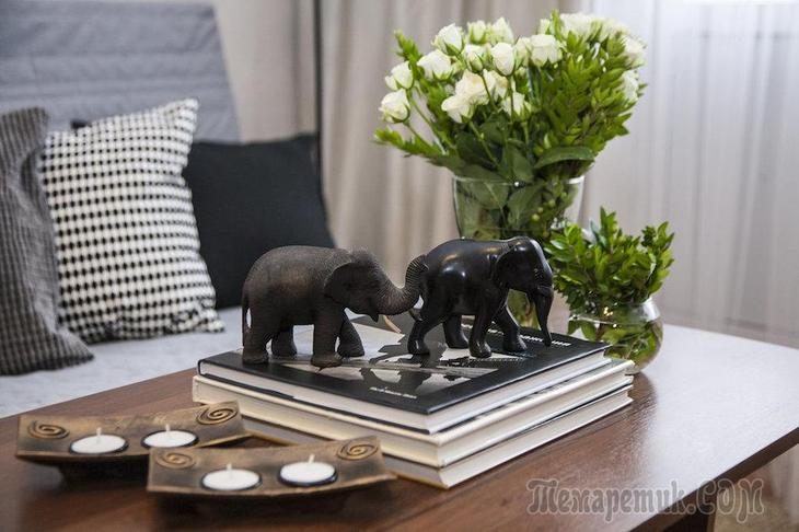 В оформлении придерживались современного скандинавского стиля с добавлением бохо. Этот стиль отлично подходит для небольших квартир: белые стены визуально расширяют пространство, а лаконичная мебель смотрится очень современно. «Чтобы интерьер не выглядел чересчур сдержанно, – рассказывает Анна, – мне захотелось добавить богемного уюта: отсюда живые растения, этнические вазочки, фигурки и статуэтки».