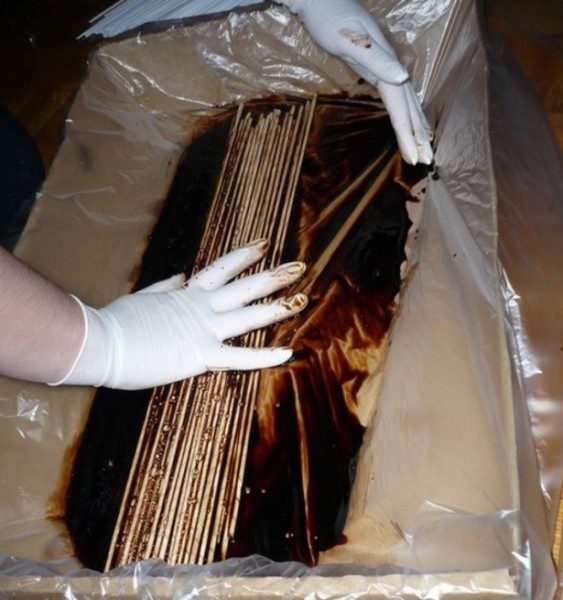Делать это следует: во-первых – быстро, иначе трубочки размокнут, во-вторых – в резиновых перчатках, иначе вы устанете отмывать руки.