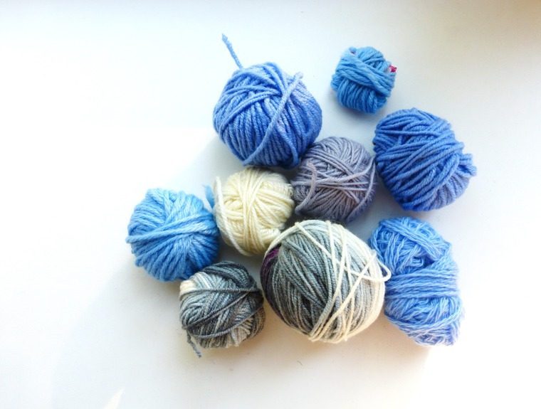 Итак, остатки пряжи (на фото не все) сортируем по цветам.