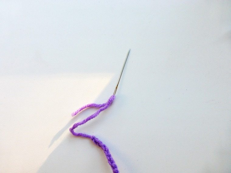 Из каждого клубочка крючком вяжем воздушную цепочку. С обеих ее сторон оставляем хвостики.