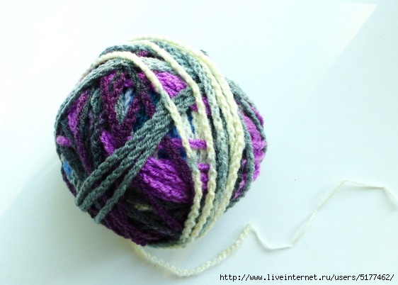 вязание" src="//mtdata.ru/u30/photoCC99/20735135704-0/original.jpg#20735135704" />Делаем 8-10 стежков по голубой веревочке. Потом аналогично 8-10 стежков по фиолетовой веревочке.