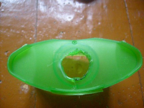 Раскалённым гвоздём выплавляем в центре крышки отверстие под кабель зарядного устройства.