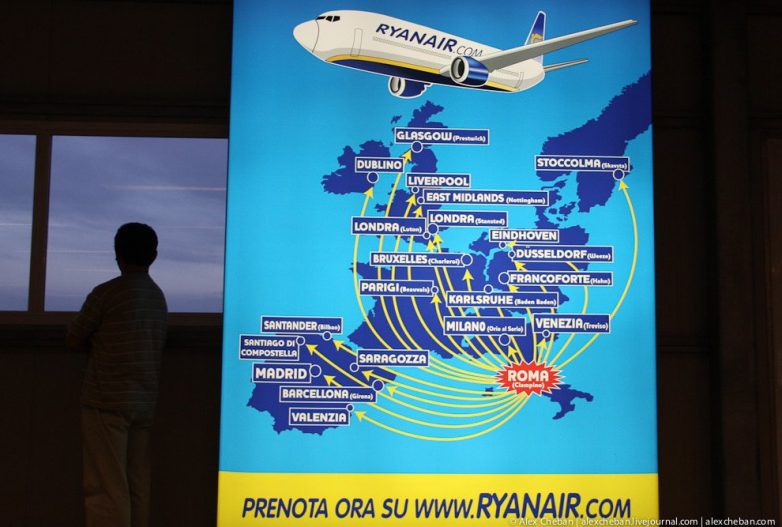 Вот на одном из баннеров в салоне указано, что Ryanair — первая в Европе по самому малому проценту утери багажа. Самый малый процент задержек и отмен рейсов. Конечно, бывают и существенные задержки, но они бывают у всех авиакомпаний, просто в случае с дискаунтером надо быть готовым, что свою проблему надо решать самому — это разумный риск.