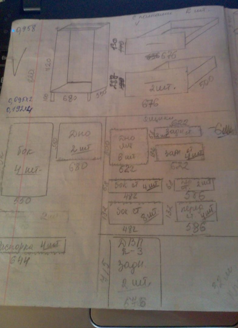 Так как это первый мой опыт чертила и рассчитывала ЛДСП почти месяц… вот это были мои наброски.