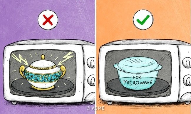 Не используйте посуду, не приспособленную для микроволновой печи — это может привести к пожару.