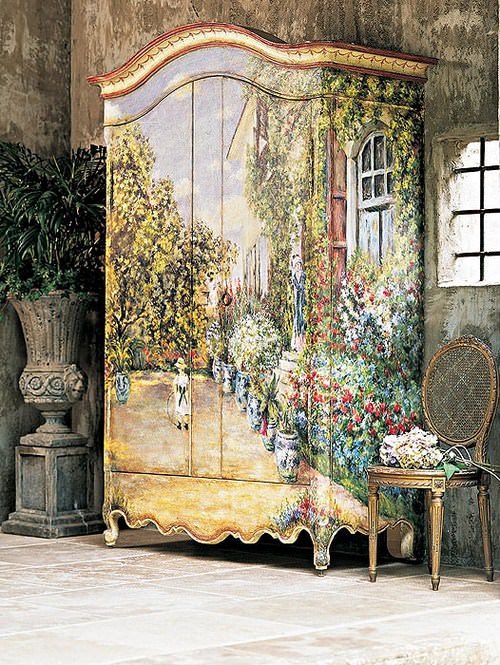 Декупаж включает в себя элементы состаривания мебели, но есть и отдельные техники, позволяющие декорировать тот или иной предмет под старину. Такой винтажной мебелью можно украсить классический интерьер, или интерьер-ретро.Своими руками можно изящно состарить шкаф, а помогут в этом следующие хитрости: