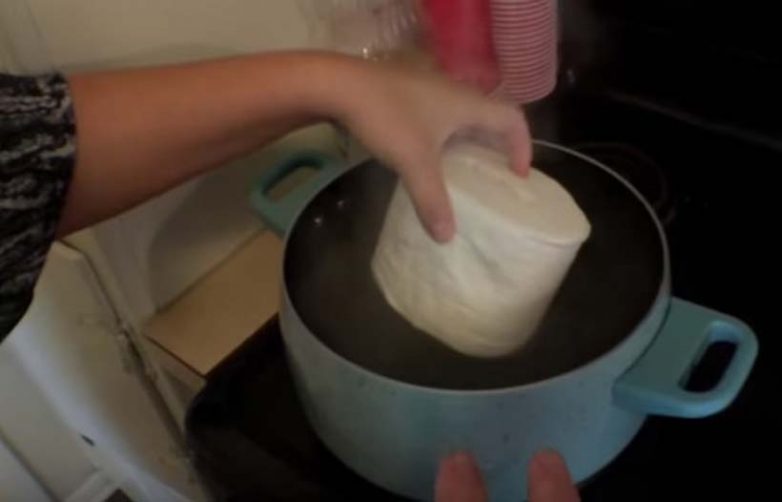 Процесс изготовления такого платья сперва очень похож на приготовление какого-то блюда: рулон бумаги варят в кипятке, затем к полученной массе добавляют клей и измельчают всё в блендере.