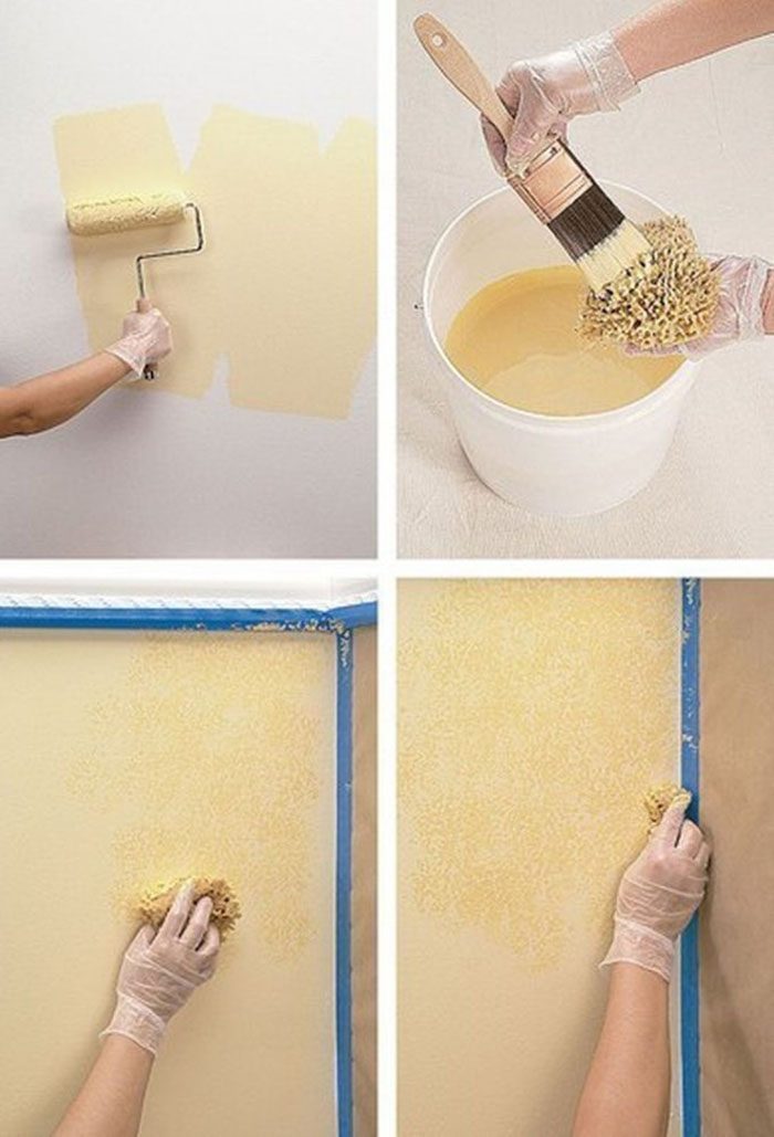Чтобы создать подобные эффекты не обязательно быть профессиональным дизайнером, художником или маляром. Да и инструменты особенные в этом случае не нужны. Сделать стену необычной можно при помощи ворсистой губки.Для этого нанеси краску-основу на подготовленную стену. Дай первому слою высохнуть и затем пройдись по всей поверхности смоченной в краску губкой.