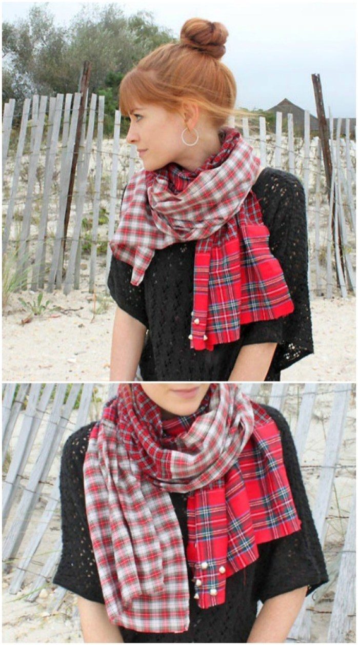 Стильный акссесуар из старой рубашки сделать очень просто. Вам понадобится отрезок фланевой рубашки и швейная машинка.