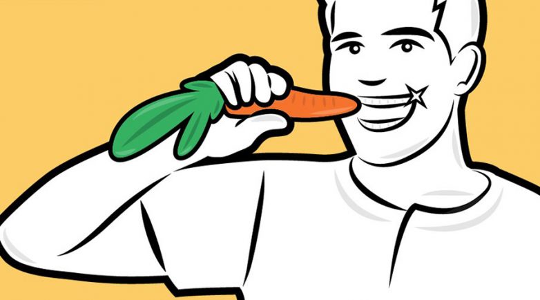 Свежие, хрустящие фрукты и овощи отлично справляются с укреплением и очисткой зубов. К примеру, яблоки и морковь помогают снять пятна, которые возникают на зубах любителей никотина и кофе. Кроме того, в яблоках и в клубнике содержится яблочная кислота, естественным образом отбеливающая эмаль.