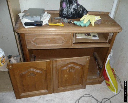 Итак, первое, что мы должны сделать – подготовить поверхность мебели под покраску. Для этого выбранный для эксперимента объект лучше всего максимально демонтировать: снять дверцы, ручки, раскрутить, если возможно, основную конструкцию, ящики и т.д. Чем дробнее, тем лучше.