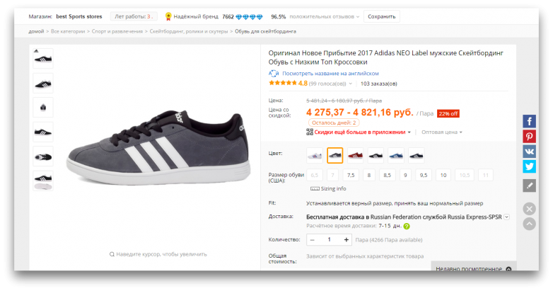 Кроме того, на AliExpress есть серые кроссовки с белыми полосками, тогда как на официальном сайте Adidas полоски на серых кроссовках тёмно-серые.
