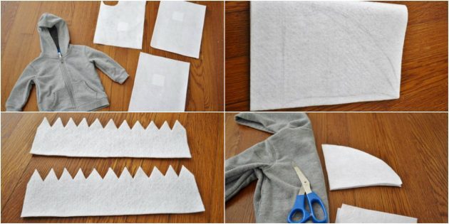 Когда гребень и хвост будут готовы, пришейте их к спине толстовки.