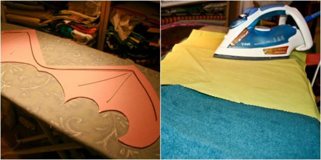 Положите крылья из флизофикса на изнаночную сторону флиса клеевой стороной к ткани и прогладьте утюгом. Обрежьте флис по форме крыльев.