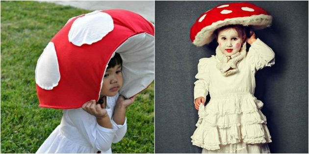 Дальше останется только пришить или приклеить белые точки, и шляпа гриба готова. Остальной наряд состоит из обычных белых вещей.
